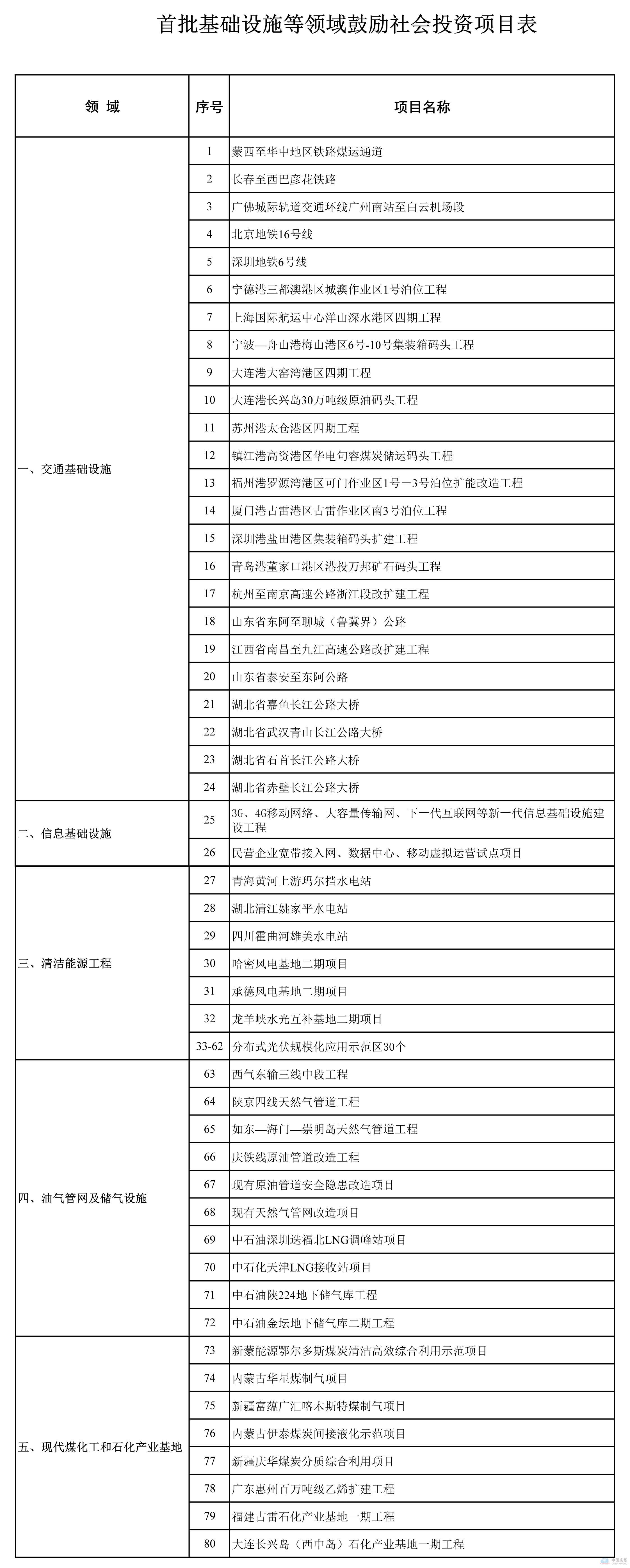 國家發展改革委關于發布首批基礎設施等領域鼓勵社會投資項目的通知